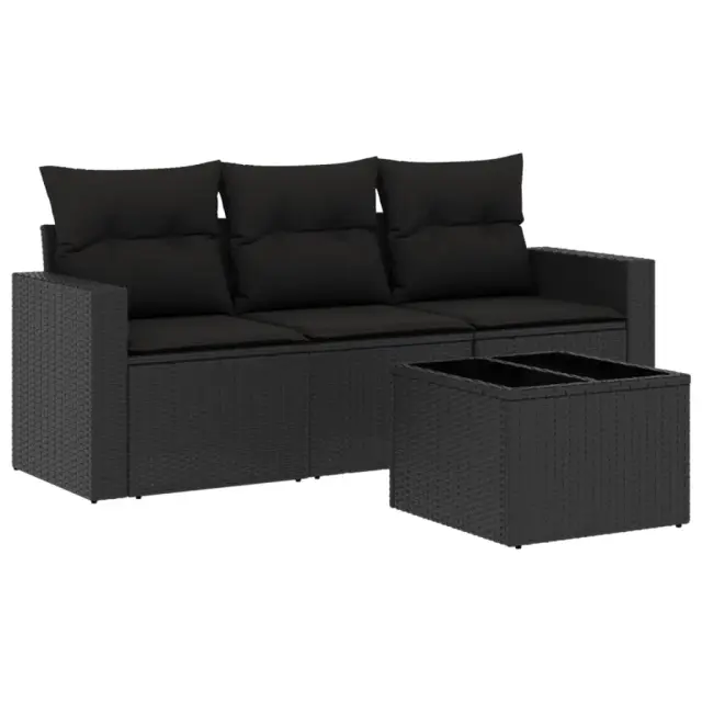 vidaXL Vrtna sedežna garnitura 4-delna z blazinami črna poli ratan