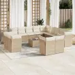 vidaXL Vrtna sedežna garnitura 14-delna z blazinami bež poli ratan