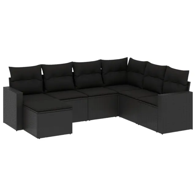 vidaXL Vrtna sedežna garnitura 7-delna z blazinami črn poli ratan