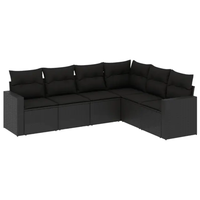 vidaXL Vrtna sedežna garnitura 6-delna z blazinami črna poli ratan