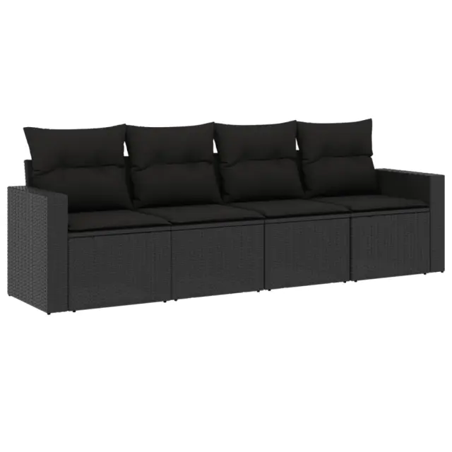 vidaXL Vrtna sedežna garnitura 4-delna z blazinami črna poli ratan