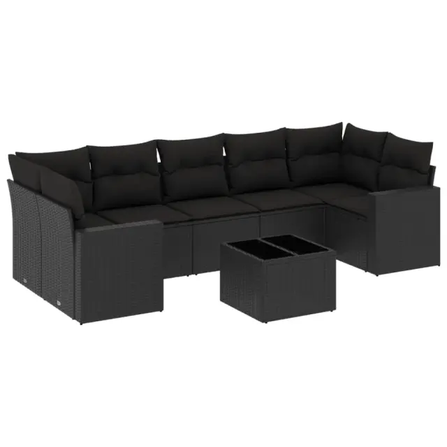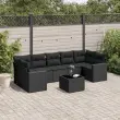 vidaXL Vrtna sedežna garnitura 8-delna z blazinami črn poli ratan