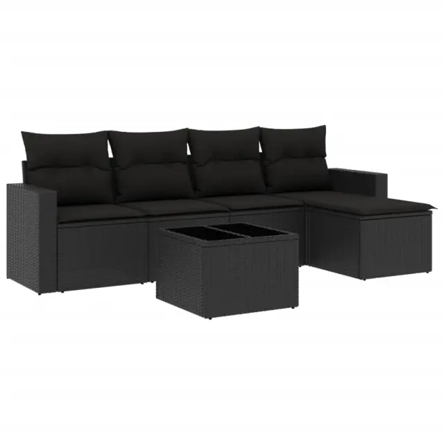 vidaXL Vrtna sedežna garnitura 6-delna z blazinami črna poli ratan