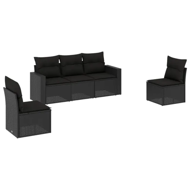 vidaXL Vrtna sedežna garnitura 5-delna z blazinami črn poli ratan