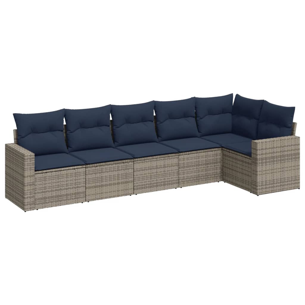 vidaXL Vrtna sedežna garnitura 6-delna z blazinami siv poli ratan