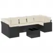 vidaXL Vrtna sedežna garnitura 8-delna z blazinami črn poli ratan