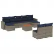 vidaXL Vrtna sedežna garnitura 10-delna z blazinami siv poli ratan