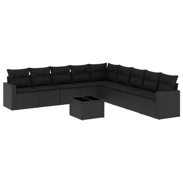 vidaXL Vrtna sedežna garnitura 10-delna z blazinami črn poli ratan