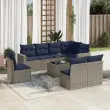 vidaXL Vrtna sedežna garnitura 9-delna z blazinami siv poli ratan