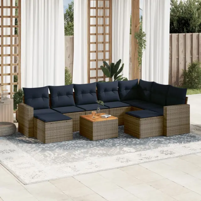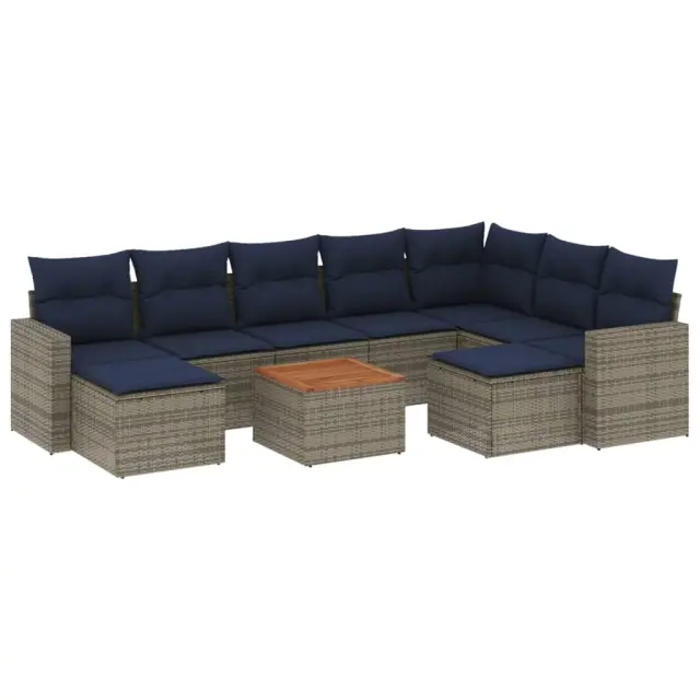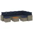 vidaXL Vrtna sedežna garnitura 10-delna z blazinami siv poli ratan