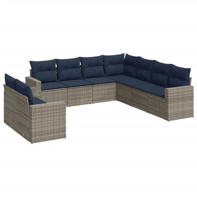 vidaXL Vrtna sedežna garnitura 9-delna z blazinami siv poli ratan