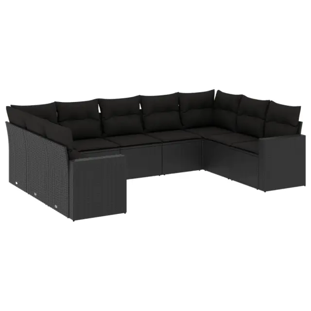 vidaXL Vrtna sedežna garnitura 9-delna z blazinami črn poli ratan