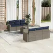 vidaXL Vrtna sedežna garnitura 7-delna z blazinami siv poli ratan