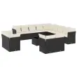 vidaXL Vrtna sedežna garnitura 14-delna z blazinami črn poli ratan