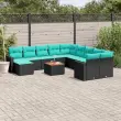 vidaXL Vrtna sedežna garnitura 12-delna z blazinami črn poli ratan