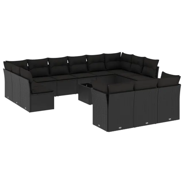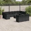 vidaXL Vrtna sedežna garnitura 14-delna z blazinami črn poli ratan