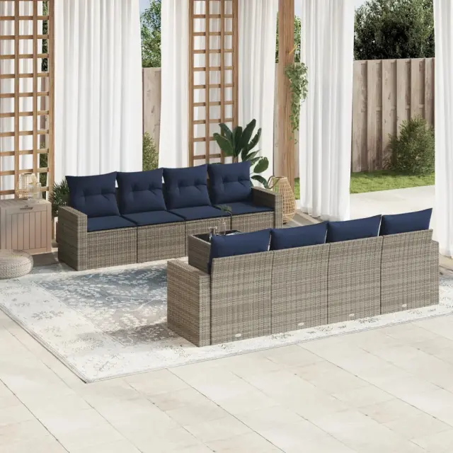 vidaXL Vrtna sedežna garnitura 9-delna z blazinami siv poli ratan