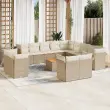 vidaXL Vrtna sedežna garnitura 14-delna z blazinami bež poli ratan