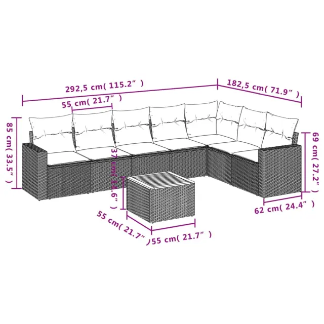 vidaXL Vrtna sedežna garnitura 8-delna z blazinami bež poli ratan