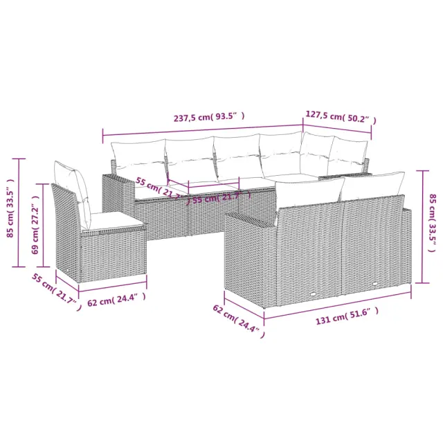 Ta vrtna sedežna garnitura je popoln dodatek za vaše dvorišče, teraso ali verando, saj zagotavlja udoben in vabljiv prostor za klepet z družino in prijatelji ali preprosto za sprostitev in uživanje na prostem.