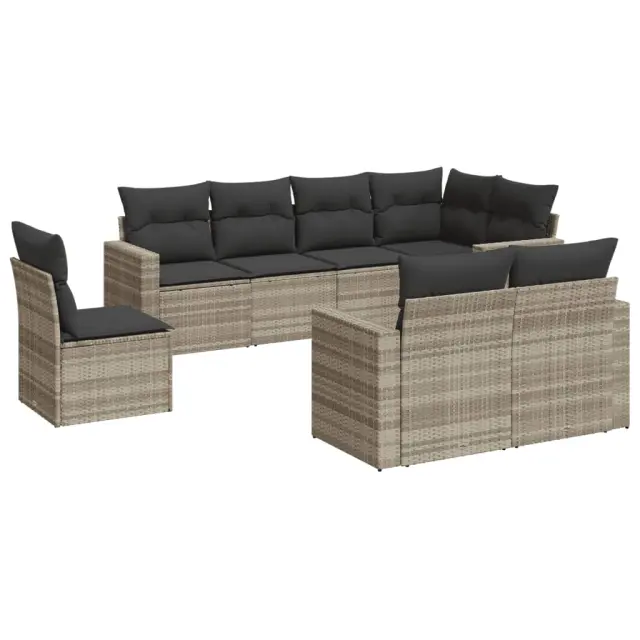 vidaXL Vrtna sedežna garnitura 8-delna z blazinami sv. siv poli ratan