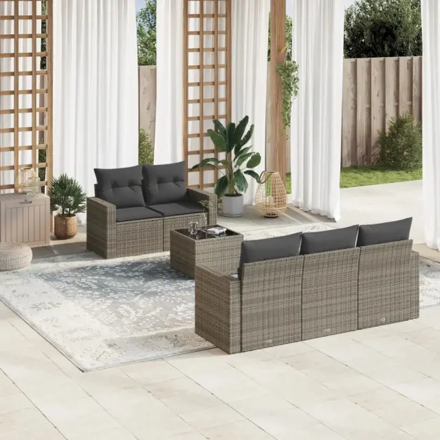vidaXL Vrtna sedežna garnitura 6-delna z blazinami siv poli ratan