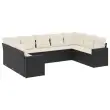 vidaXL Vrtna sedežna garnitura 9-delna z blazinami črn poli ratan