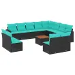 vidaXL Vrtna sedežna garnitura 13-delna z blazinami črn poli ratan
