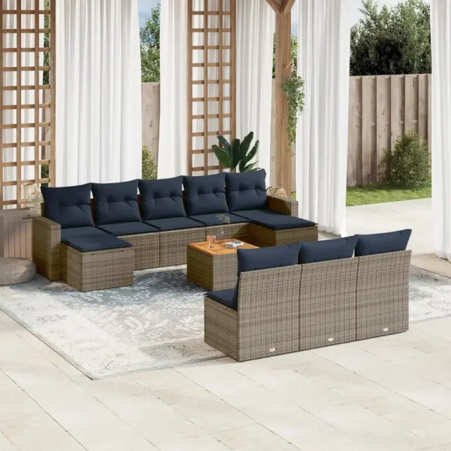 vidaXL Vrtna sedežna garnitura 11-delna z blazinami siv poli ratan