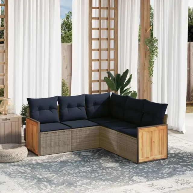 vidaXL Vrtna sedežna garnitura 5-delna z blazinami siv poli ratan