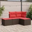 vidaXL Vrtna sedežna garnitura 4-delna z blazinami rjav poli ratan