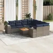 vidaXL Vrtna sedežna garnitura 9-delna z blazinami siv poli ratan