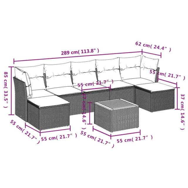 vidaXL Vrtna sedežna garnitura 8-delna z blazinami črn poli ratan
