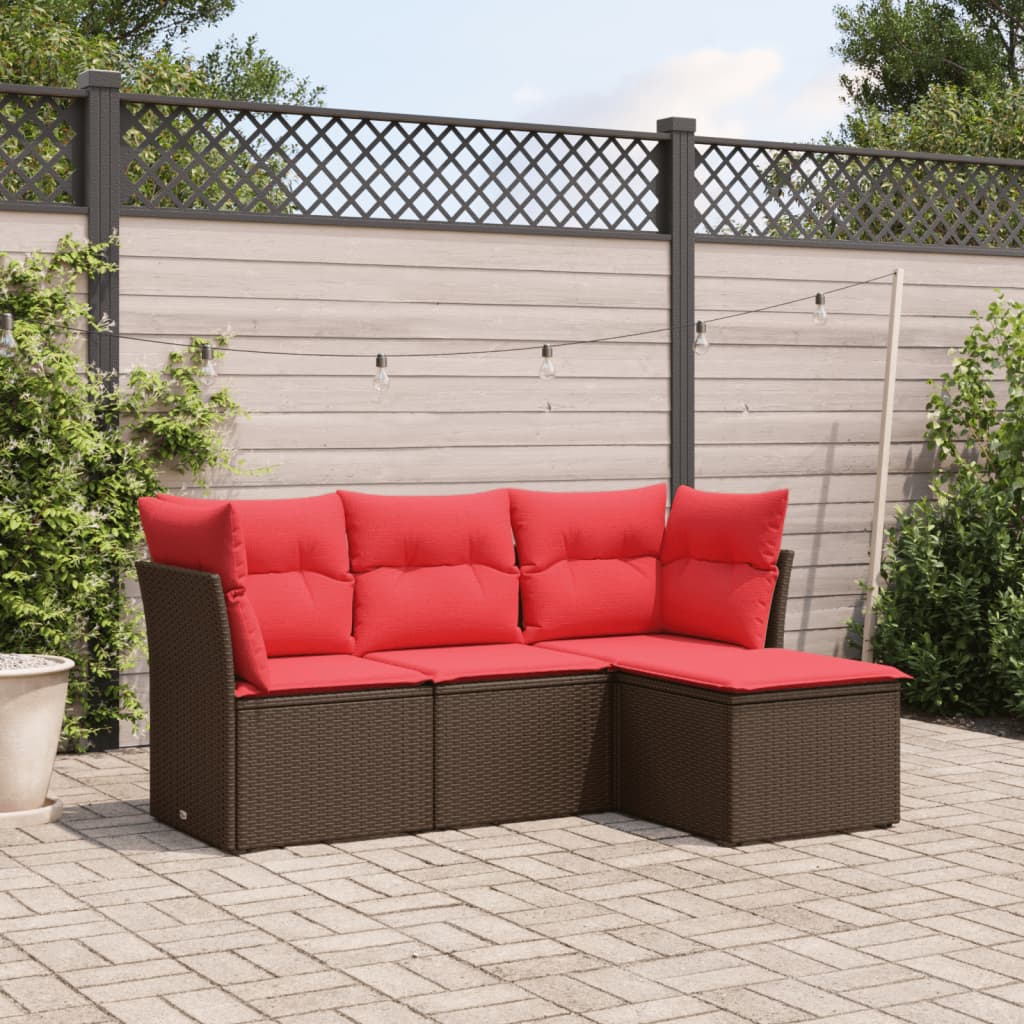vidaXL Vrtna sedežna garnitura 4-delna z blazinami rjav poli ratan