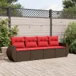 vidaXL Vrtna sedežna garnitura 4-delna z blazinami rjav poli ratan