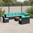 vidaXL Vrtna sedežna garnitura 11-delna z blazinami črn poli ratan