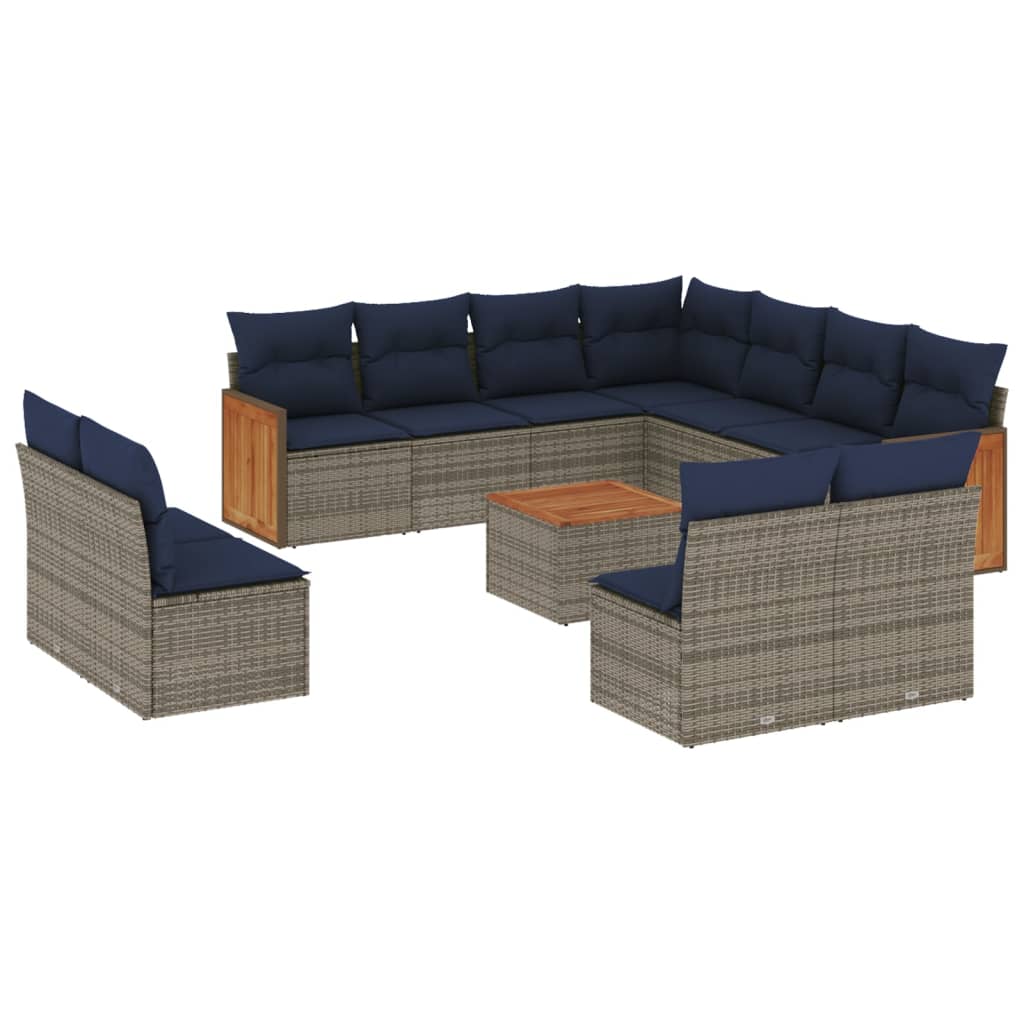 vidaXL Vrtna sedežna garnitura 12-delna z blazinami siv poli ratan