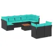 vidaXL Vrtna sedežna garnitura 10-delna z blazinami črn poli ratan