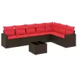 vidaXL Vrtna sedežna garnitura 8-delna z blazinami rjav poli ratan