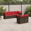 vidaXL Vrtna sedežna garnitura 7-delna z blazinami rjav poli ratan