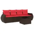 vidaXL Vrtna sedežna garnitura 5-delna z blazinami rjav poli ratan