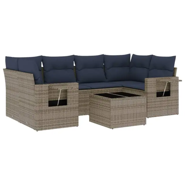 vidaXL Vrtna sedežna garnitura 7-delna z blazinami siv poli ratan