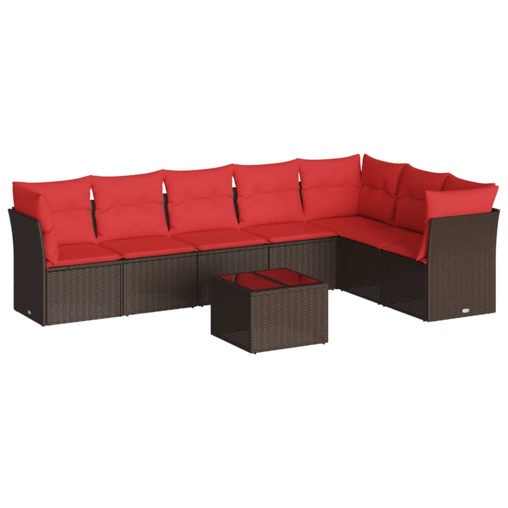 vidaXL Vrtna sedežna garnitura 8-delna z blazinami rjav poli ratan