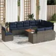 vidaXL Vrtna sedežna garnitura 11-delna z blazinami siv poli ratan