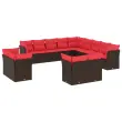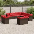 vidaXL Vrtna sedežna garnitura 13-delna z blazinami rjav poli ratan