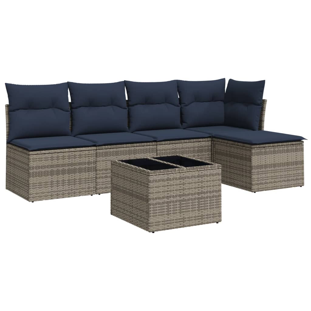 vidaXL Vrtna sedežna garnitura 6-delna z blazinami siv poli ratan