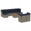 vidaXL Vrtna sedežna garnitura 10-delna z blazinami siv poli ratan