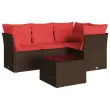 vidaXL Vrtna sedežna garnitura 5-delna z blazinami rjav poli ratan