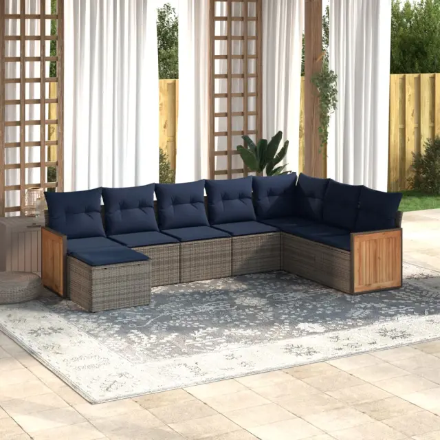 vidaXL Vrtna sedežna garnitura 8-delna z blazinami siv poli ratan