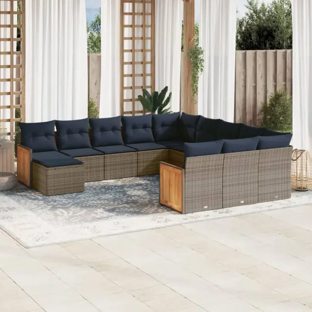 vidaXL Vrtna sedežna garnitura 12-delna z blazinami siv poli ratan